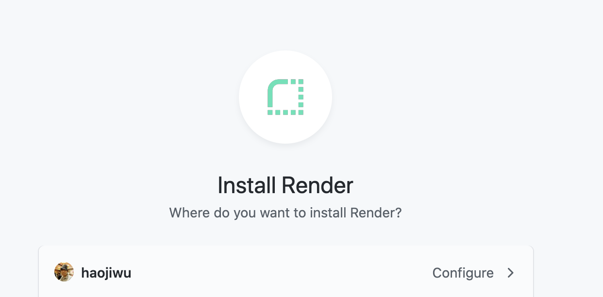 There will be another redirection, then you will see Render app installation. Click “Configure” in your account, and select “All repositories” and save.